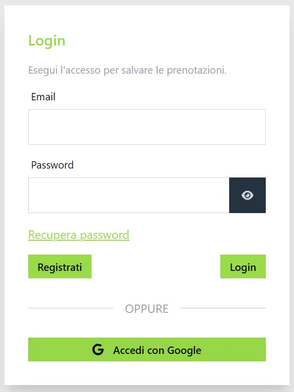 Come funziona? I tuoi pazienti scelgono semplicemente “Accedi con Google” e tutti i dati necessari (nome e email) vengono trasferiti in modo sicuro nel sistema, senza compilare moduli.